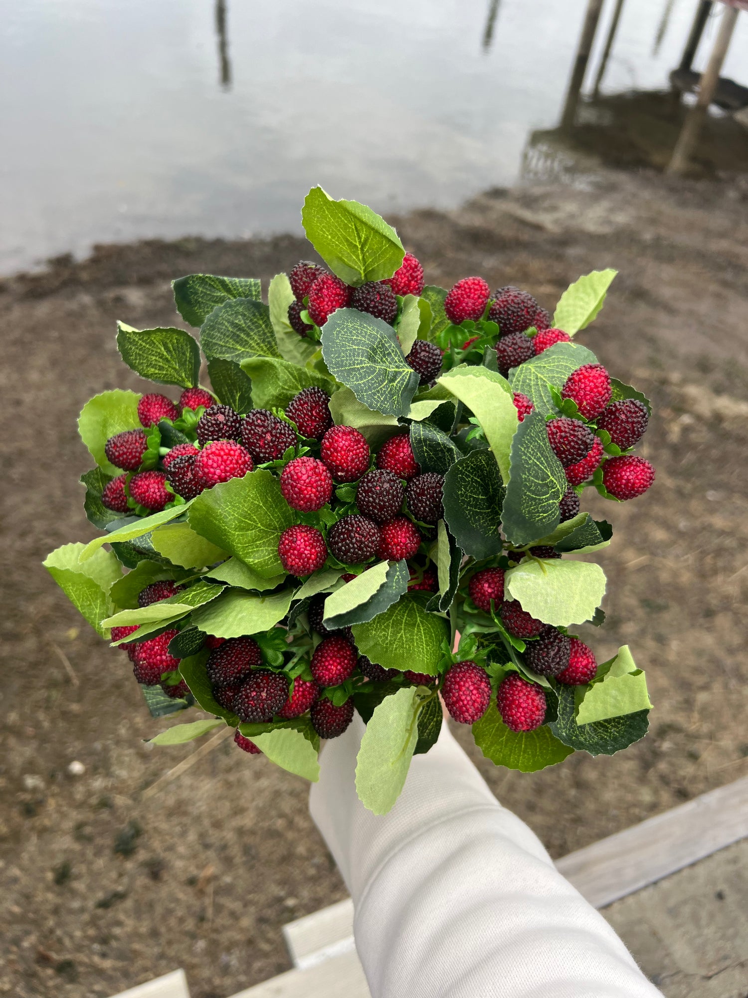 Add a pop of color to any space with this vibrant faux berry bundle. Featuring rich red and deep plum berries paired with lush green leaves, this realistic arrangement brings a fresh, natural touch to your home décor. Perfect for centerpieces, seasonal displays, or adding a cheerful accent to shelves and vases, beautiful, durable, and maintenance-free.